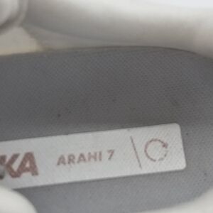 Preowned Hoka Arahi 7 running shoes, sold as pictured with minor marks