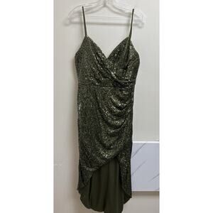 Ieena for Mac Duggal 11272 Women's Size 10 Olive Green Sequin High Low Dress NWT