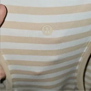 Stylish beige striped tank top. Ideal for casual wear. Soft and comfortable fabric.
