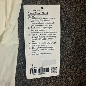 NWT Lululemon Pace Rival Mid-Rise Skirt *Long, Size 14