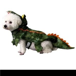Transform your pet into a playful alligator/dinosaur with this green costume. Perfect for parties and fun outings. Other clothes included. All size M. Very good condition.