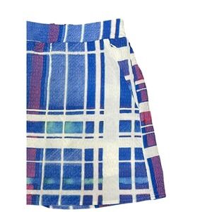 Ethyl Skort Womens 4 Blue White Plaid Crinkle Pull On Pockets Built In Shorts