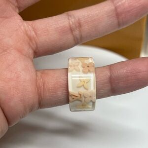 Stylish Louis Vuitton ring in gold and cream. Adds luxury to any outfit.