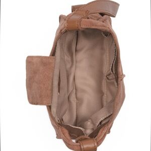 stitching detail, adjustable crossbody strap with buckle, antique brass tone hardware, fully lined interior