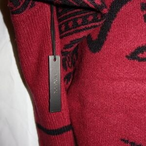 Maxsport Burgundy/Black Patterned Open Front Cardigan. Small/Medium Size. NWT.