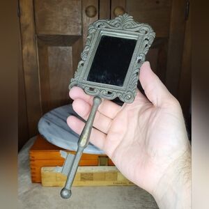 Vintage Ornate Handheld Mirror with Key Handle