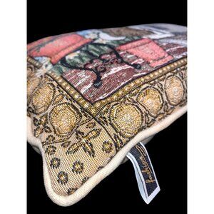 Charming vintage tapestry pillow featuring a bunny rabbit in a floral garden scene. Adds a cozy, whimsical touch to living spaces.