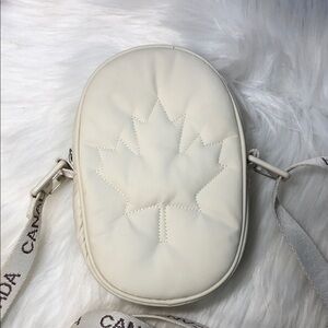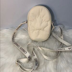 It's a small bag, designed for essentials like phone, keys, and cards, and comes in Team Canada colors (like black or crimson red) with distinctive maple leaf designs.