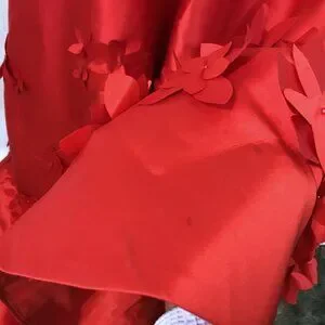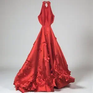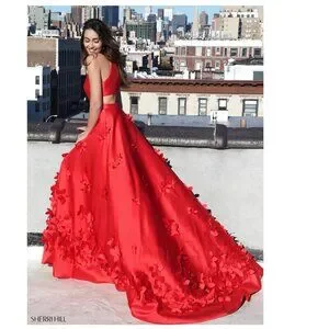 SHERRI HILL Formal Ball Gown Sleeveless A-Line Flower Petal Appliques Red Sz 2