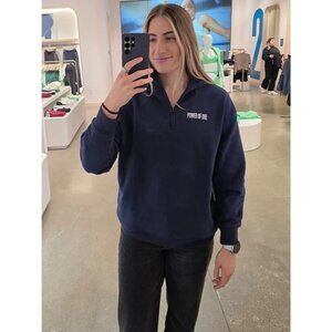 ATHLETA S Power Of She 1/4 Zip Fleece Sweatshirt Navy Blue Small Regular