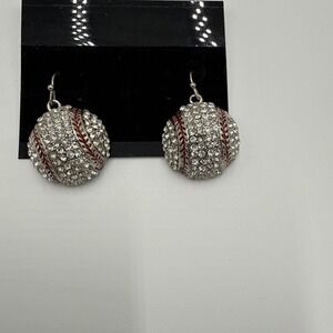 The product is a pair of baseball bling earrings, designed with a sporty yet trendy style. The earrings feature a baseball-themed design, likely incorporating iconic baseball elements such as the sport's emblem or colors. These accessories would be perfect for fans of baseball looking to add a touch of their favorite sport to their outfit.