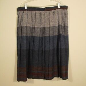 This a full pleated skirt features a stylish striped pattern in gray and blue tones. Perfect for any occasion, it offers a comfortable fit and a chic look. Great cold weather skirt made with wool. Vintage original skirt in great condition.