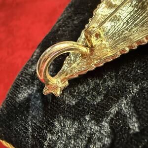 This vintage Christmas tree pendant or brooch/pin combo is a charming piece that features a triangle shape Christmas tree with a multicolor design of red and green rhinestones and green enamel on gold tone metal. Perfect for the holiday season, this retro accessory captures the beauty and whimsy of Christmas with a bohemian and fairytale-inspired flair. The approximately 2-inch pendant adds a touch of nature and artistry to any outfit, making it a unique and festive addition to your vintage jewelry collection.