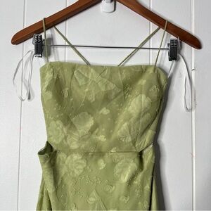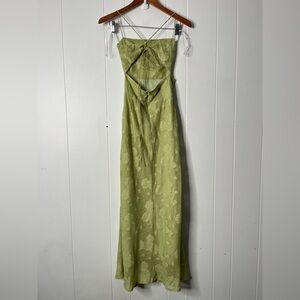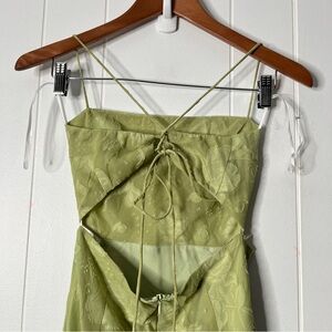 Hello Molly Rainbow Glow Midi Dress in Sage Green Lace Up Back Floral Size S
