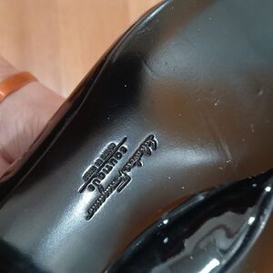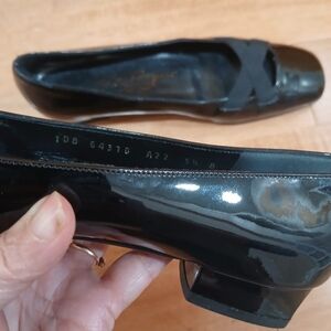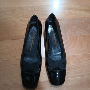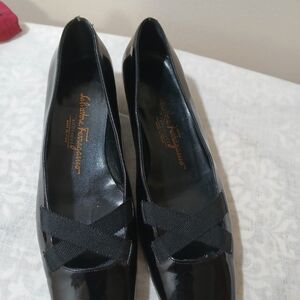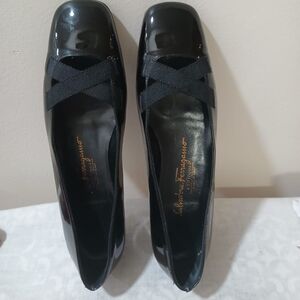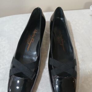Preowned but never used Black SALVATORE FERRAGAMO Labelle Nero Patent calf Leather Crossover 5.5 B flats. Very stylish. Made in Italy with high-quality patent leather, these shoes feature a solid black color, low heel height, and a comfortable medium shoe width.