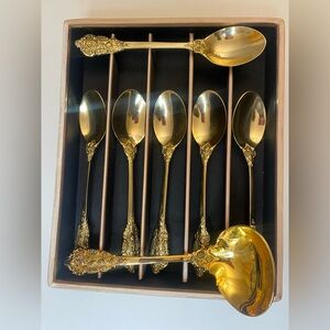These 6 beautiful F.B. Rogers gold plated flatware with the French Rose motif and