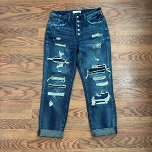 high-rise distressed cuffed boyfriend jeans