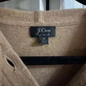 J.Crew Everyday Cashmere Pullover Hoodie in Heather Camel Henley Sweater M