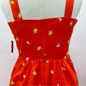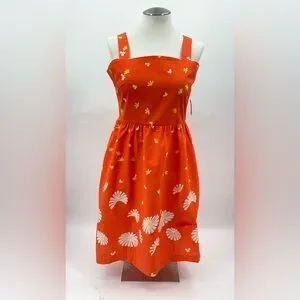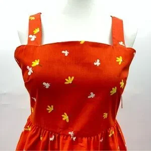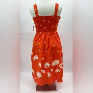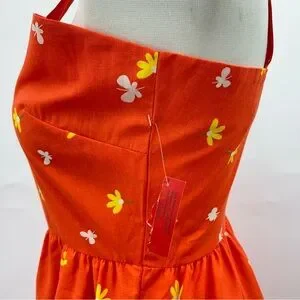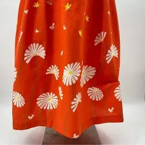 NEW Vintage 80s 18 Midi dress Orange Floral 0947 A-line fit and flare butterfly