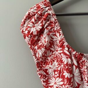 MADEWELL MARGIE BUTTON UP MINI DRESS IN ABSTRACT FLORA BRICK RED SIZE 2