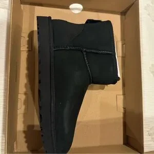 New In Box Ugg Black Shearling and Leather Ankle Boots. I have a pair and wear them with everything - jeans, dresses, pajamas! Size 7, rubber sole for outdoor wear. There are back in style (although did they ever go out of style???