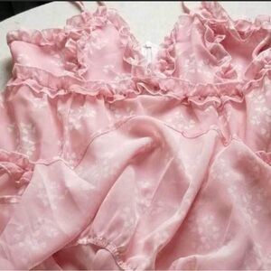 Flirty tiers of ruffles add an extra touch of whimsy to this lovely delicate allover floral print babydoll spaghetti strap dress.