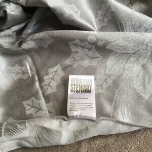 Martha Stewart Christmas Round Tablecloth Silver Damask Poinsettia & Holly 70' D