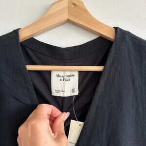 Abercrombie And Fitch Mara Linen-Blend V-Neck Vest Mini Dress Black MT