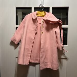 Vtg Swing Coat , Dress & Bonnet Girls 3 Piece 50s 60s Pink Lined Handmade