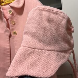 This vintage 3-piece swing coat, dress, and bonnet set in pink is perfect for little girls who love 50s and 60s fashion. The mid-length coat features long sleeves, a button closure, and a classic fit. The lined garment is handmade with acetate lining, making it ideal for special occasions like parties or weddings. The set is inspired by Little Red Riding Hood and features retro accents like buttons and a removable hood, adding a touch of whimsy to the winter, fall, or spring wardrobe.