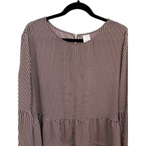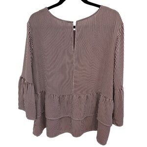 Time & Tru Plus Size Burgundy Stripe Bell Sleeve Ruffle Hem Top Size XXL