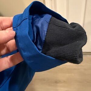 Stay cozy and stylish in this Pendleton Hooded Rain Jacket, a versatile water-resistant parka lined with Pendleton’s signature plaid. This women’s size Large jacket features a full zip with snap overlay, adjustable hood, and front flap pockets—perfect for layering in transitional weather. The blue shell is sleek and windproof, while the plaid lining adds warmth and heritage charm. Interior Pendleton crest patch adds a luxe touch.