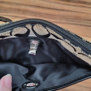 Coach Black and Tan Signature Logo Wristlet with Front Pocket