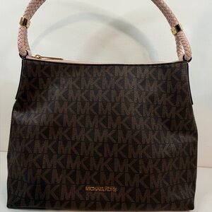 Michael Kors Brown Monogram Pink Braided Strap & Bottom Shoulder Bag Very Clean