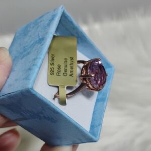 SALE! New Genuine Amethyst & Rose Gold Over 925 Sterling Silver Ring W Box