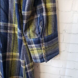 Stetson Western Flannel Dress Size M Green Blue Plaid Long Sleeve Rodeo Festival. Very good pre-owned condition, no flaws.