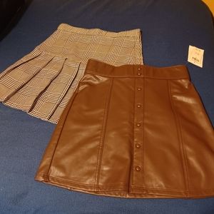 Girls H&M pairs of skirts NEW WITH TAGS. One is a Houndstooth pleated skirt that fits like a 13-14. Features a zip & adjustable waistband. The faux leather skirt is a beautiful brown color, perfect western/cowgirl style. Size 13-14. Features faux covered buttons down the front and elastic in the back waistband.