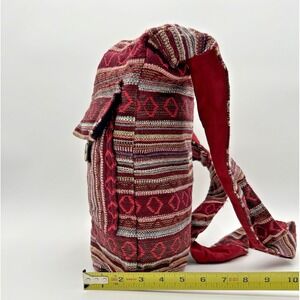 The Tribe Azure Fair Trade Women's Tribal Tote Shoulder Bag is a large, banana-shaped bag perfect for travel and casual occasions. Made with knit cotton fabric, this multicolor bag features a zip closure and double handles in various colors. The bag is adorned with a striped pattern and brown hardware, giving it a unique bohemian, hippie vibe. With features like being eco-friendly, packable, and lined with cotton fabric, this handmade bag from India is a stylish and functional accessory for those who appreciate a blend of nature and colorful design.