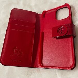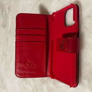 Christian Louboutin Red Leather iPhone Case w/Card Slots & Metal Snap Closure