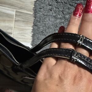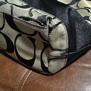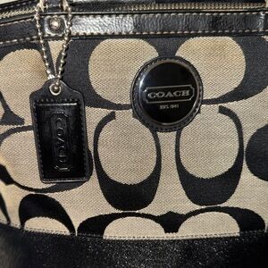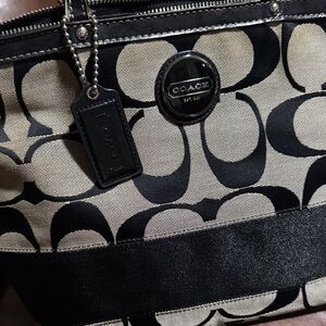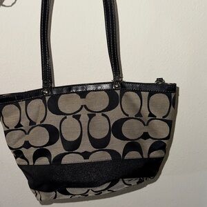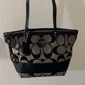 Fair Coach tote with signature pattern. Black and tan design. Ideal for daily use. Good to fair ( has a corner mark )