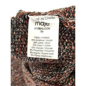 Maje Mini Sweater Dress Sheath Tweed Red Round Neck Zip Shoulder Long Sl…