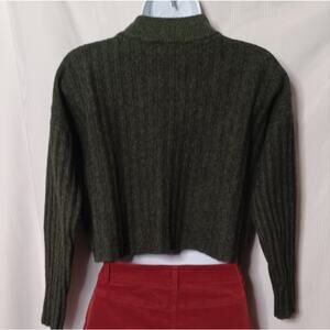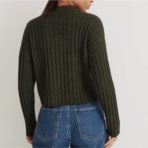 Madewell Levi Rib Mock Neck Wool Blend Crop Pull-Over Sweater in Heather Dark Forest.