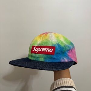 Tie dye camp cap by Supreme! The hat is pre-owned but it's in great condition. No flaws, no stains.