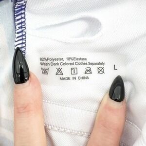 Keywords: swimsuit, bathing suit, one piece, floral, blue, white, tie shoulder, summer, beachwear, poolside, vacation, resort, athletic, fashion