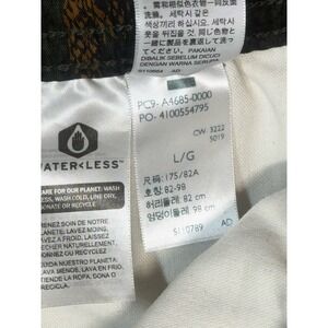 The Levi's Trail Cargo Shorts in men's size Large feature a stylish brown snakeskin pattern, drawstring pockets, and a 6" inseam, making them perfect for casual outdoor activities like hiking. Made of comfortable cotton fabric with a medium wash, these cargo shorts have a flat front and mid-rise fit for a regular and relaxed style. The Levi's brand and outdoor theme add a touch of rugged quality to these versatile and functional shorts. Ideal for a day of adventure and comfort.