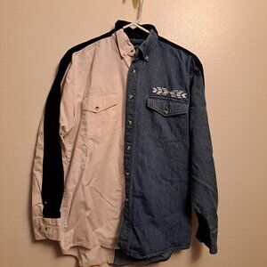 VTG Wrangler Western Shirt Color Block Aztec Embroidered Denim Long Sleeve Small