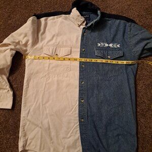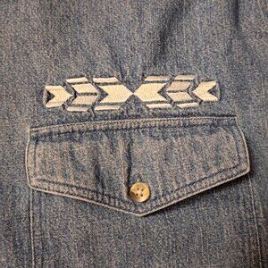 VTG Unisex Wrangler Western Shirt Color Block Aztec Embroidered Denim ,Size Small Vintage Pre-owned Condition *see Pictures for measurements and condition