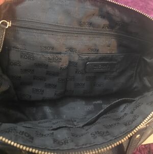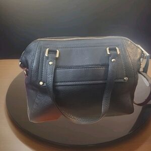 Michael Kors Black Pebbled Leather Satchel ,Gold Hardware Detachable Strap, bottom goldtone bag protectors .