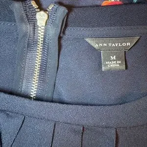 Chic navy blue 3/4 sleeve blouse. Perfect for versatile styling. Comfortable and elegant. Pullover with zipper in the back.