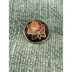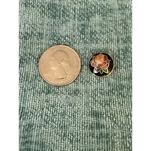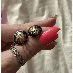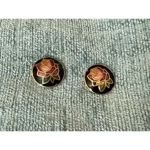 1-Vintage Round Cloisonne Rose Stud Earrings Button Style, Boho Hippie Jewelry/Hand-Crafted Collectible